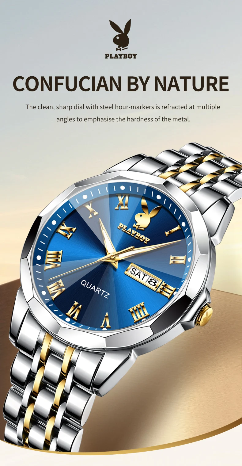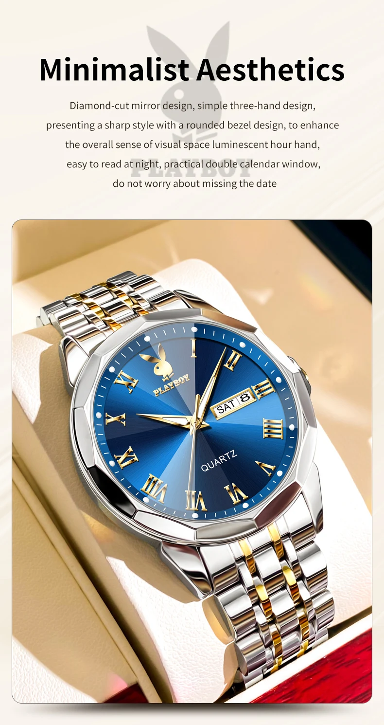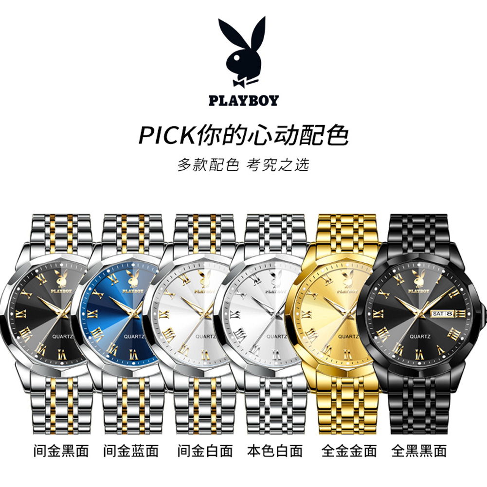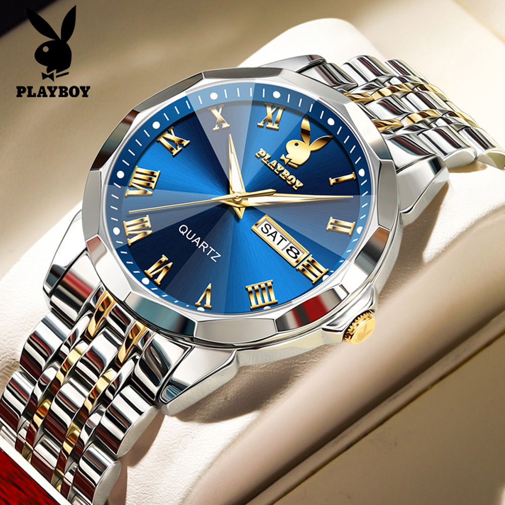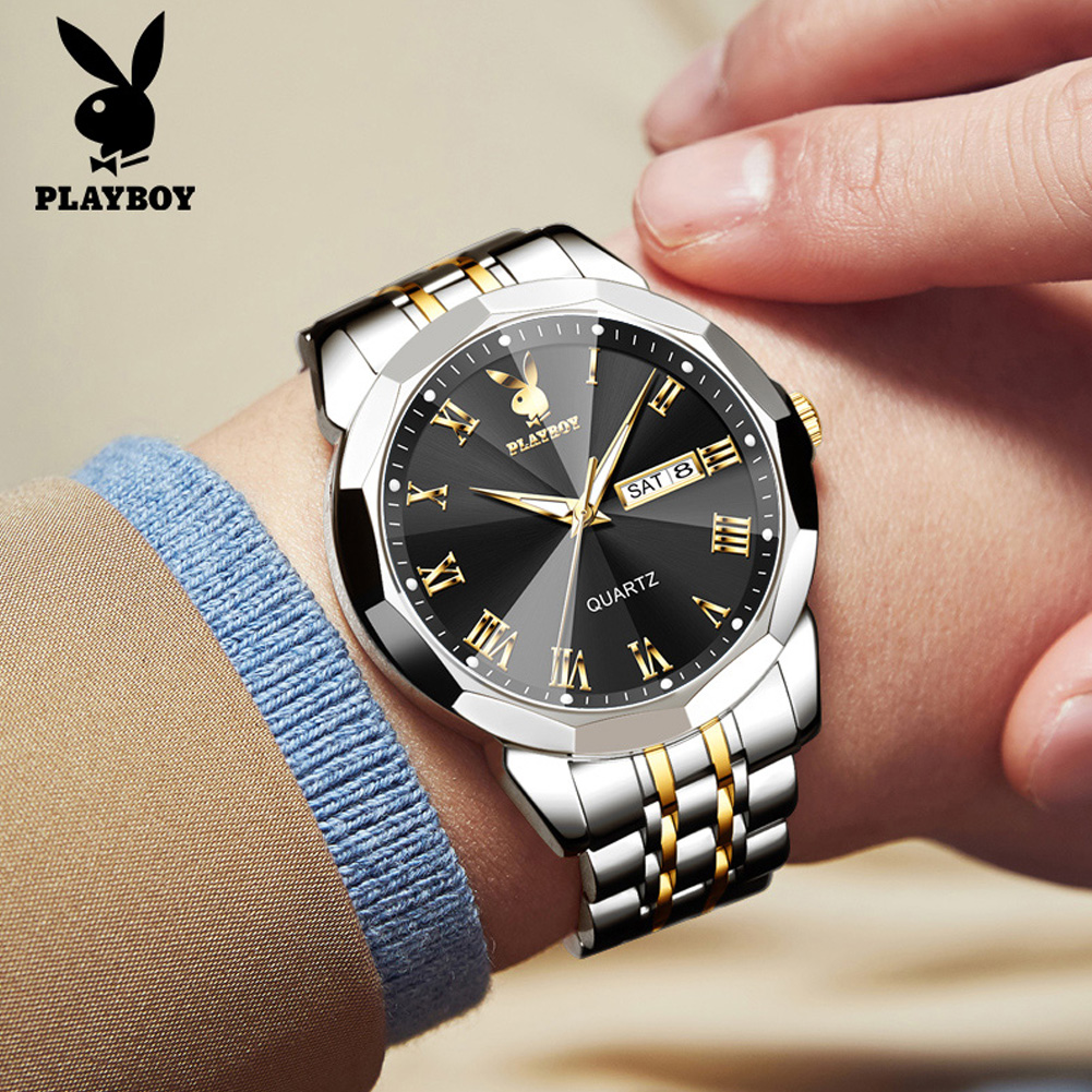 PLAYBOY 3502 high quality Famous brands oem odm custom logo calendar Waterproof luxury Calendar Business quartz watch for man
