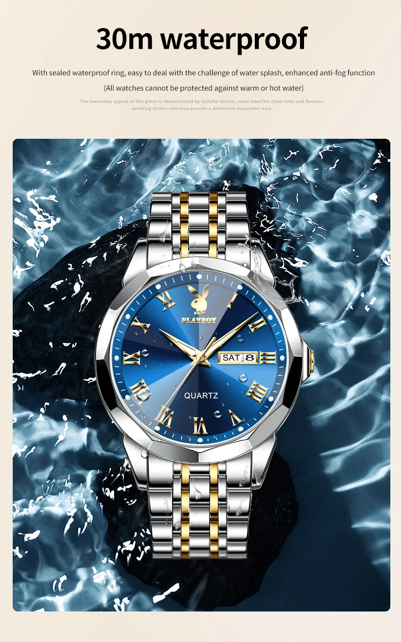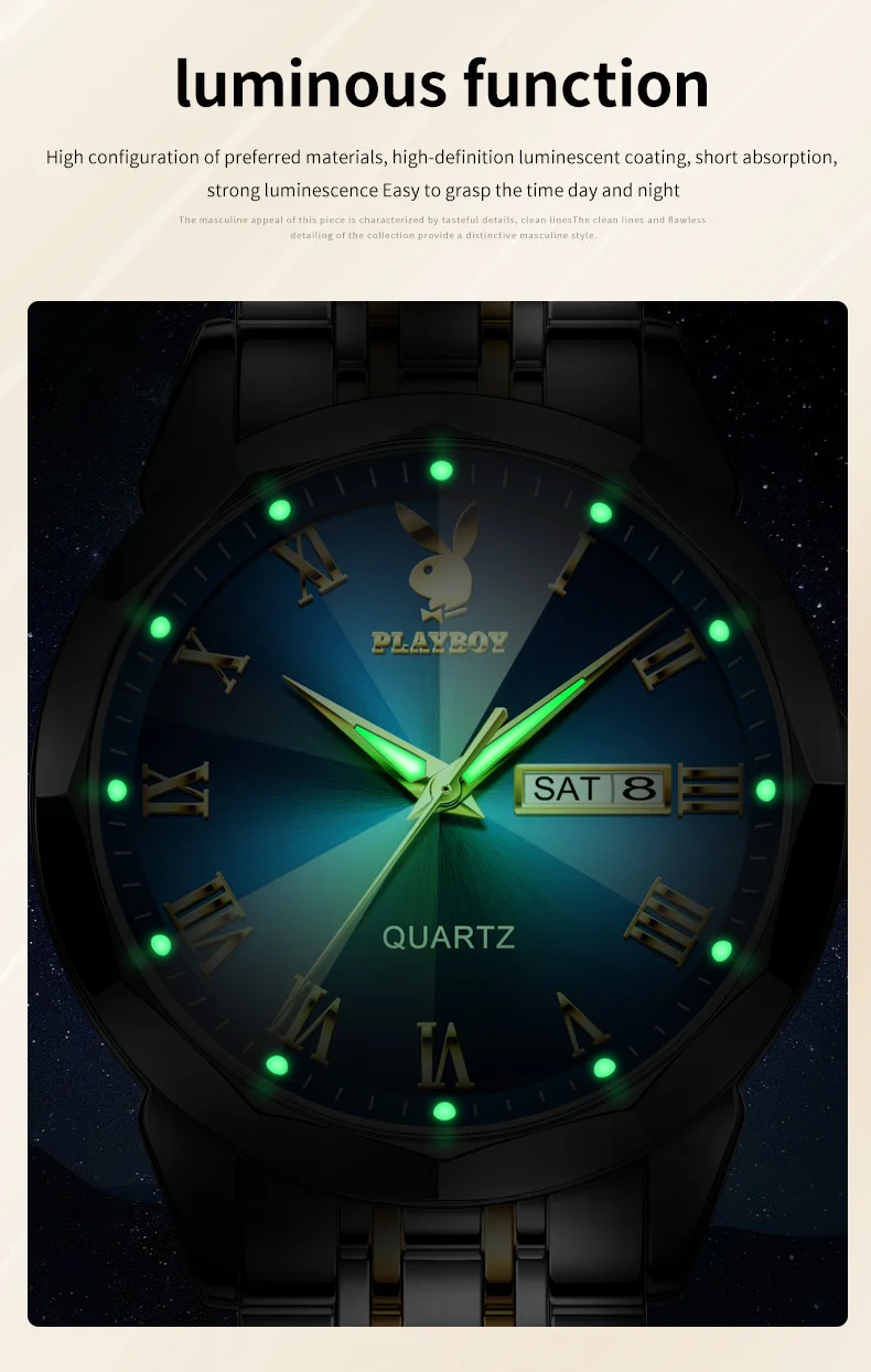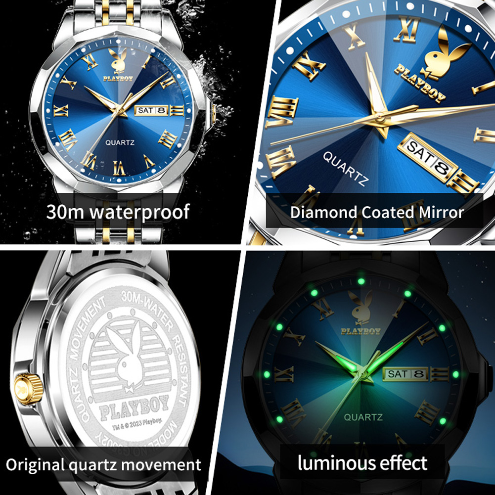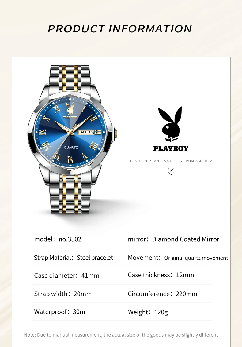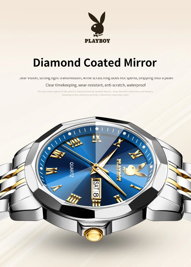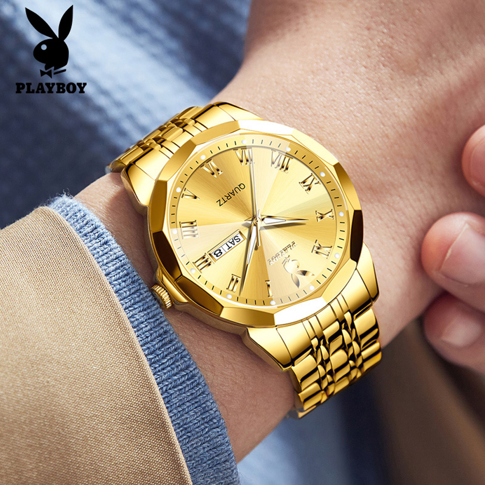 PLAYBOY 3502 high quality Famous brands oem odm custom logo calendar Waterproof luxury Calendar Business quartz watch for man