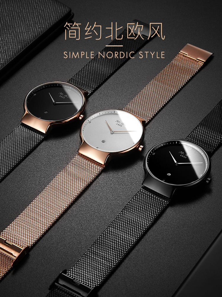 Iss Unique Matte Ripple Dial With Arabic Number Men Watch Luminous Hands Ultra Thin 7mm Case Waterproof Quartz Watch
