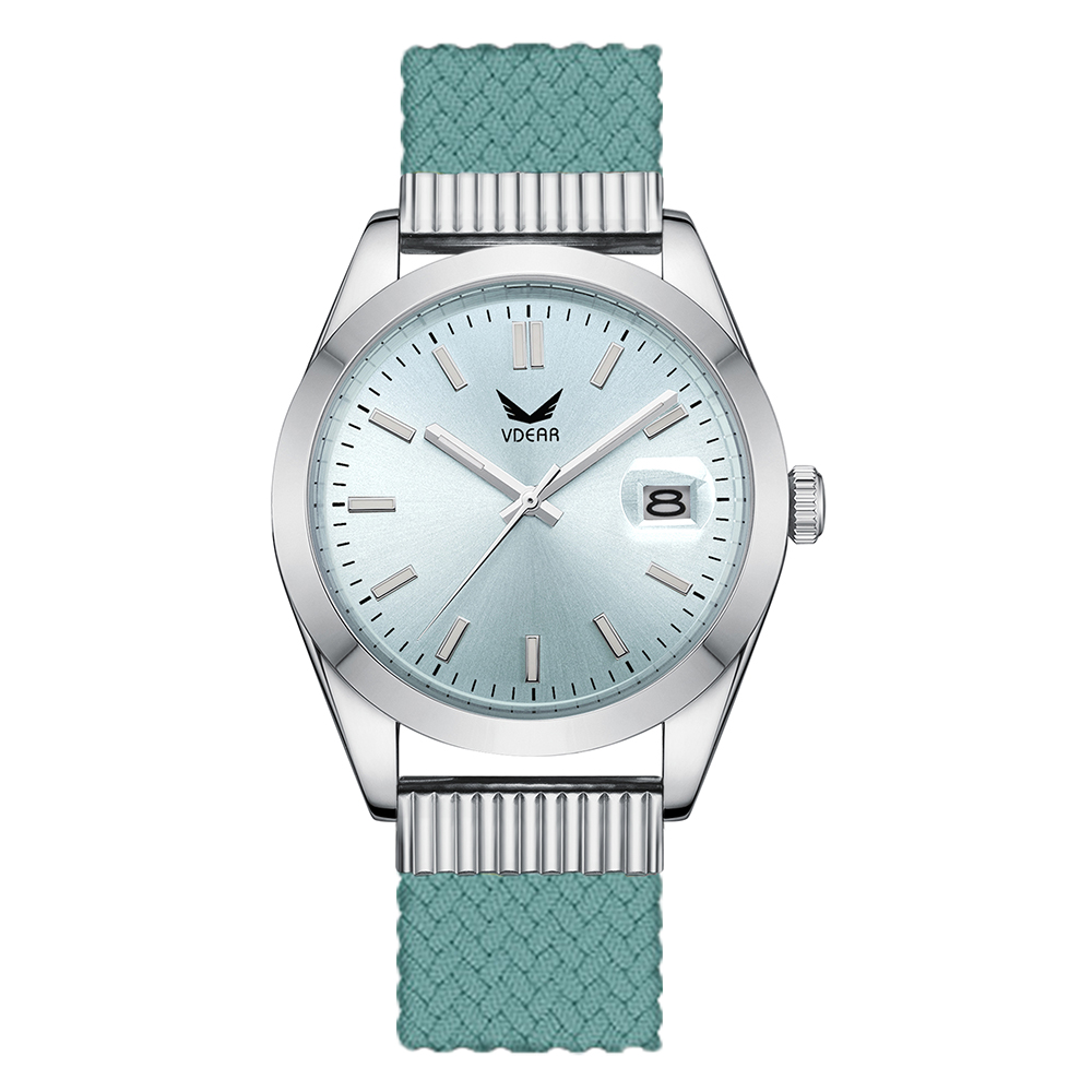 Iss Oem Mens Luxury Quartz Watch Customized Multi Color Patchwork Nylon Strap Calendar Luminous Watch