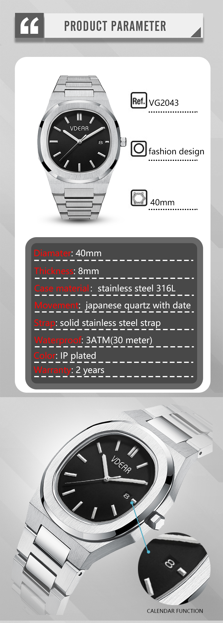 High quality Men luxury Quartz Watch, Quartz Calendar Watch