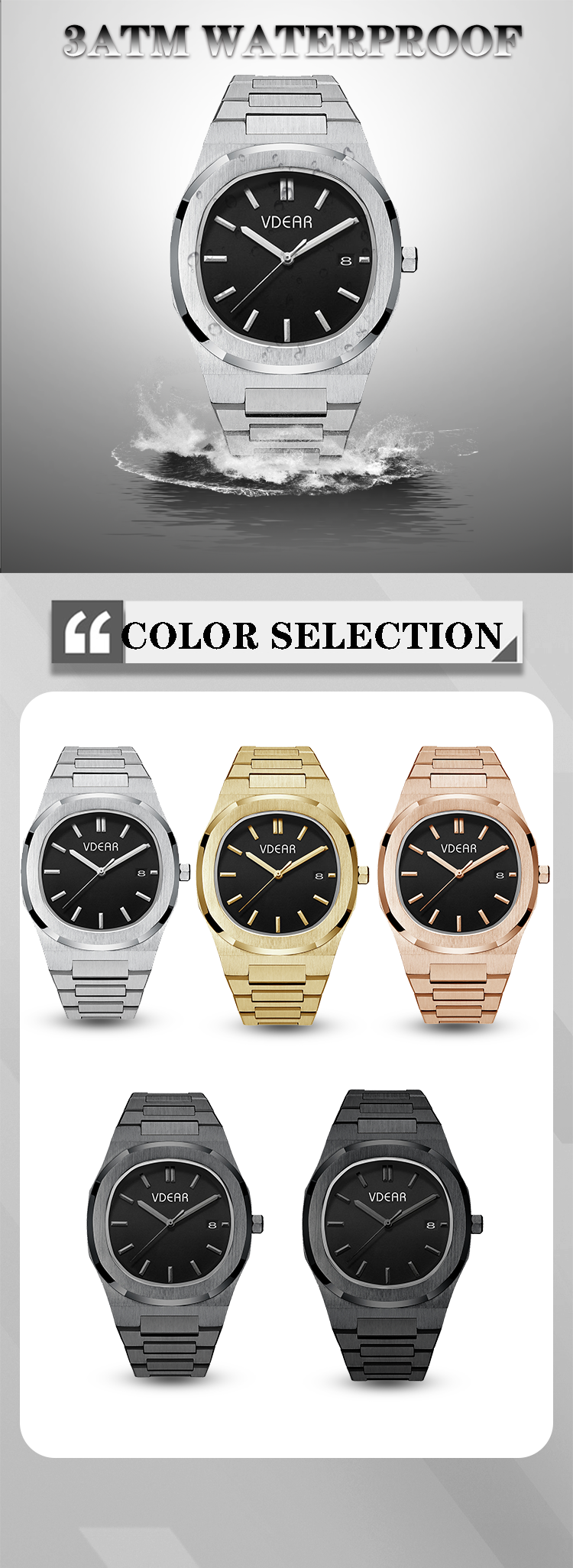 / Iss Square case Luminous hands Watch With Date Customized Fashionable And Simple Black Classic Simple Dial Waterproof