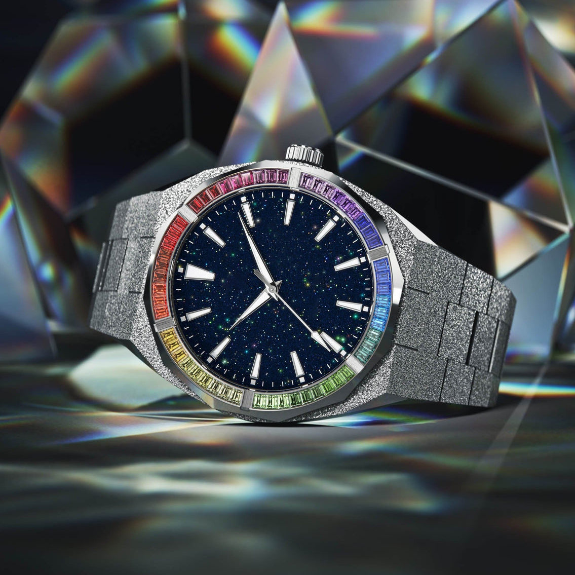 Iss Star Dust Dial Frosted Watch Oem Odm High Quality Rainbow Diamond Private Label Luxury Quartz Watches For Men