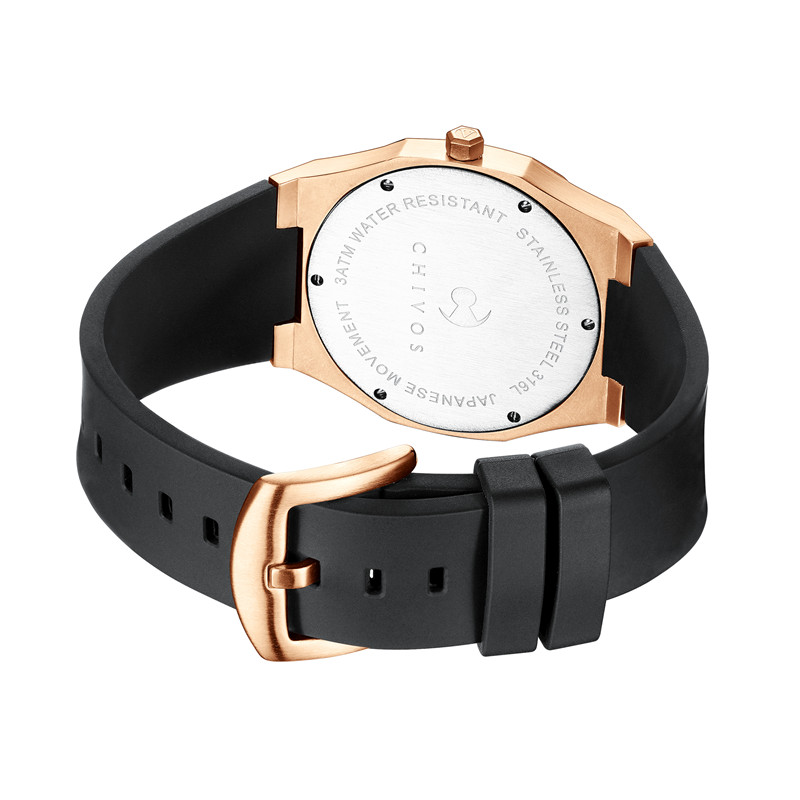 Iss Ultra Thin Quartz Black Dial Watch Rose Gold Steel Band Octagon Luxury Fashion Waterproof Quartz Men’S Watch