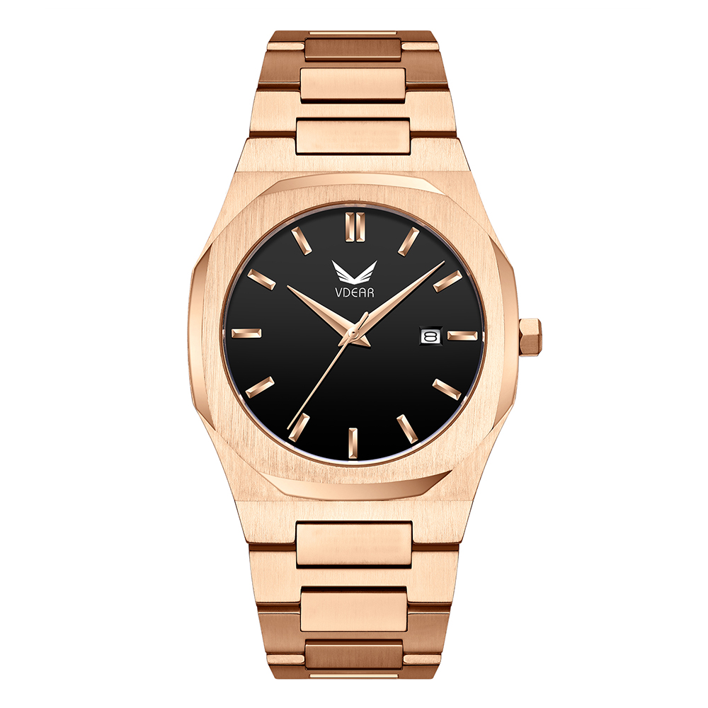 / Iss Ultra Thin Quartz Black Dial Watch Rose Gold Steel Band Octagon Luxury Fashion Waterproof Quartz Men’S Watch