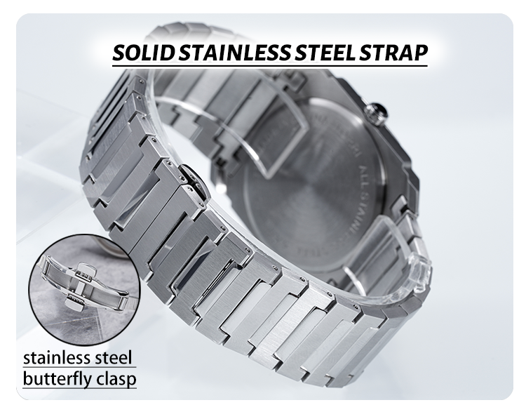 1.Water Resistance: Stainless steel watch is known for its durability and resistance to corrosion. This ensures that the timepiece will withstand everyday wear and tear.