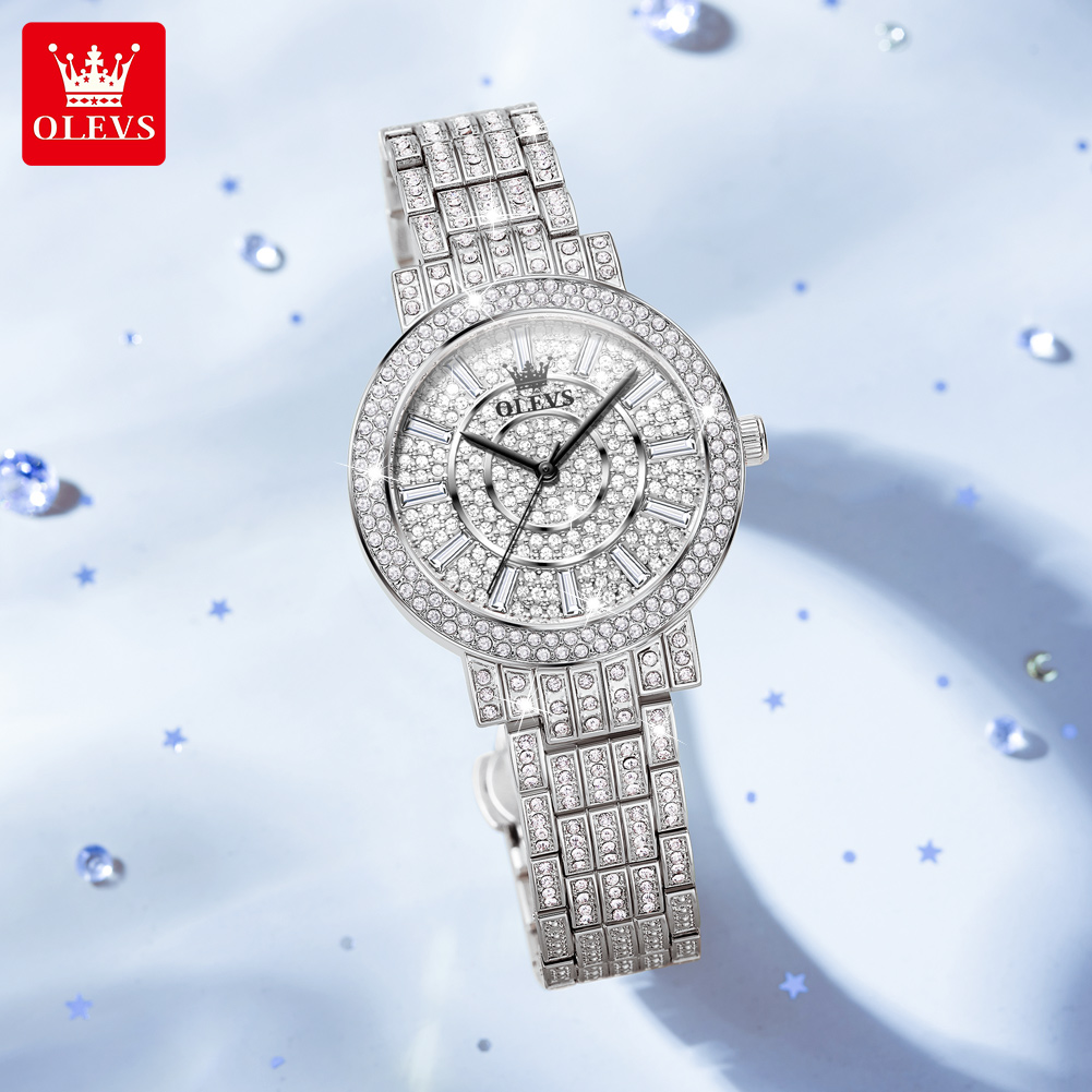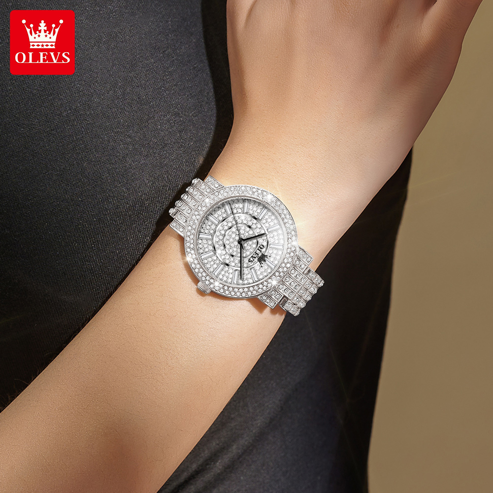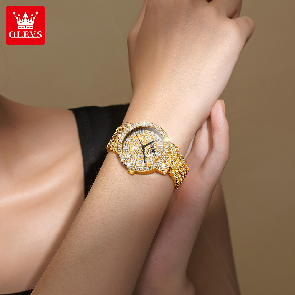 OLEVS 9904 oem custom logo stainless steel Hot style luxury fashion Diamonds Elegant gift quartz watch for woman