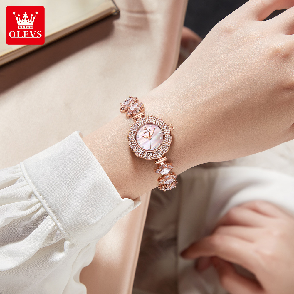 OLEVS 9813 oem custom logo luxury waterproof Diamond Elegant Elegant Gift Women’s quartz watch for woman